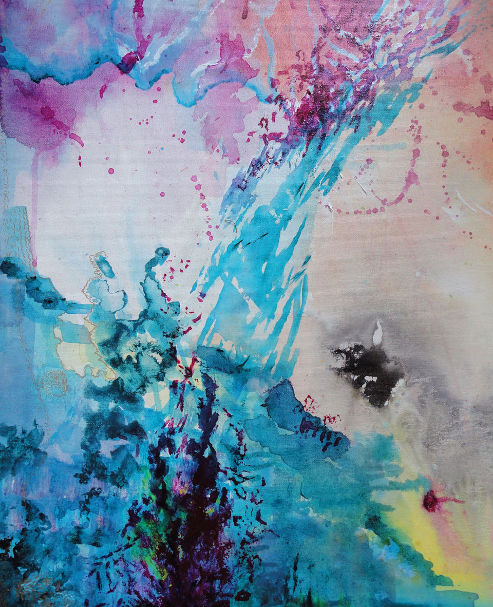 Aqueous Isolations is a visual timeline of life through a pandemic: from the blissful shroud of ignorance, to the frantic realization of a capsized world, to the intensity of solitude. The series is a map of human experience, charted in brushstrokes, vacillating between poles of hope and despair, frustration and focus. It is an exploration of being plunged into chaos, with creative outlets serving as a vital lifeline for survival.